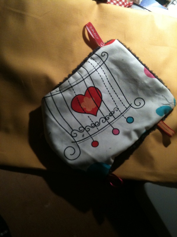 rouge, petite étiquette car les loulous adorent ça et au verso j'ai utilisé un coton